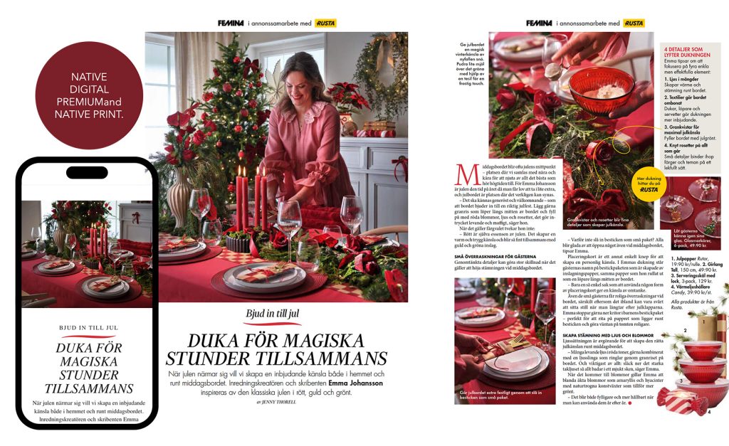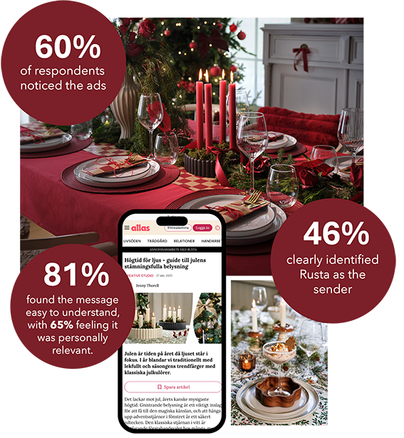 The campaign ran across four themed periods, each with its own story, providing ongoing reach and multi-faceted storytelling. Leveraging Aller Media’s trusted magazines — read by 96% of Swedish women involved in household purchasing decisions — the campaign combined inspiration with measurable business results. The integrated 360° approach transformed Rusta’s communication from informative to engaging, creating both emotional connection and tangible impact, while highlighting Rusta as the brand that enables life’s small, meaningful moments.